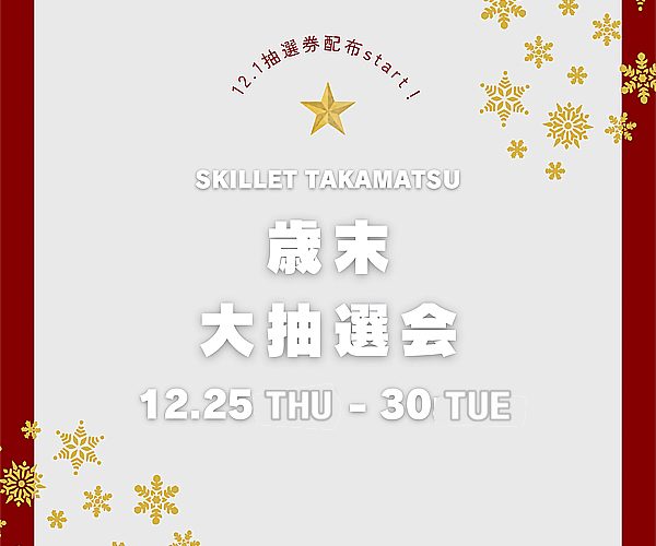 12月1日から抽選券の配布がはじまります♪《スキレット日記:2025-12-01@高松市多肥下町・スキレット》