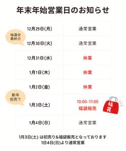 2024年から年明けにかけての営業スケジュールのご案内です!
